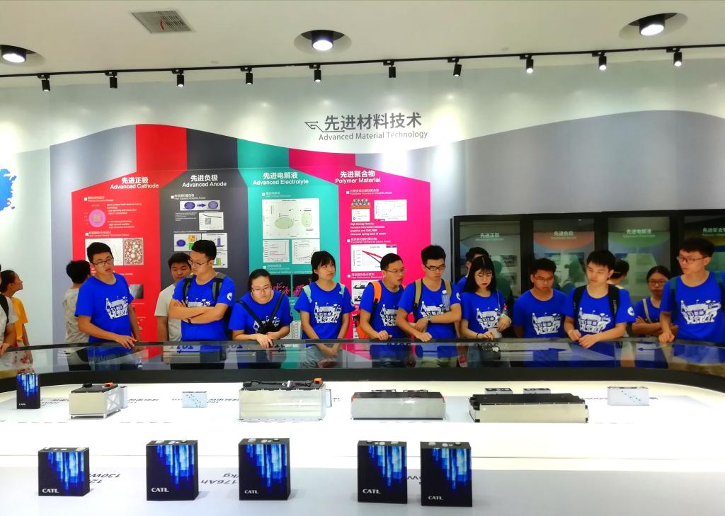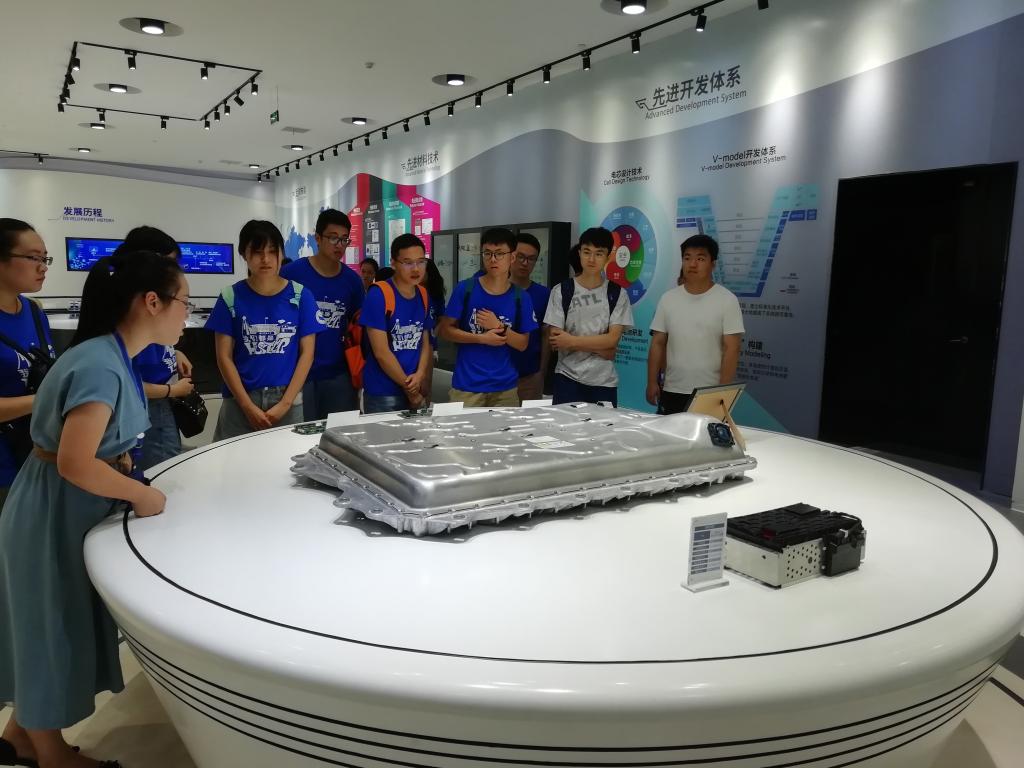 8月11日至8月14日,实践队前往福建省宁德市的宁德时代新能源科技股份有限公司进行企业实践活动,CATL公司HR陈莉女士带领实践队员参观了企业展览馆,通过对企业文化、愿景、价值观和发展历史以及产品类别、产品开发方向的介绍,让队员们对CATL公司形成全面的了解。通过参观,队员们了解到CATL不仅致力于汽车动力电池的研发,并且将发展目标长远地放于储能系统的应用上。