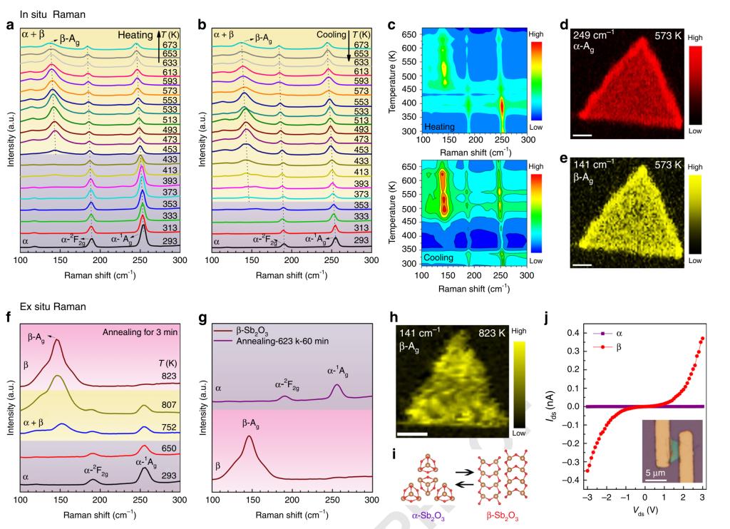 图2、二维Sb2O3分子晶体的原位和非原位拉曼光谱研究