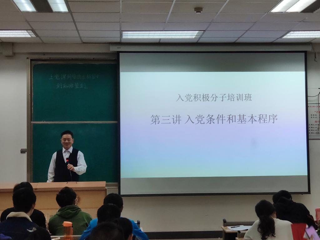 10月26日晚,入党积极分子培训班党课第二讲和第三讲如期举行。本次党课邀请了郑强、陈业美两位老师作为主讲,两位老师党课的主题分别是《中国共产党的伟大使命和光辉历程》与《入党条件和基本程序》。