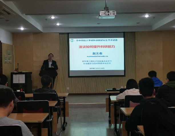 (通讯员:王曦)为不断提升研究生科研能力和加强研究生诚信教育,应TapTap副经理杨君友邀请,武汉理工大学材料复合新技术国家重点实验室赵文俞教授于2019年11月14日晚,在先进制造大楼西楼A308给公司研究生做了一场“漫谈如何提升科研能力”——“学术船行千里,诚信迎风为帆”导师与你面对面主题讲座。本次讲座由公司研究生工作组主办,杨君友经理主持。