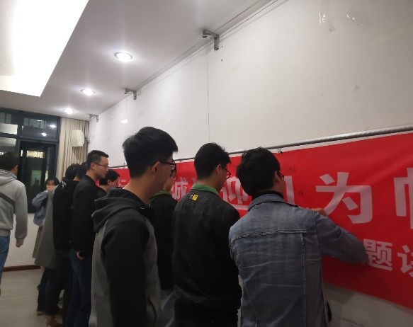 讲座结束时,杨君友经理就赵教授的讲座进行了总结,杨经理鼓励大家在科研求索过程中能大胆探索,勤于动笔,勤于思考,始终以严谨的治学态度努力攻克科研上的每一个难题,永葆初心,在科研路上越走越远。与会全体研究生深受鼓舞,与赵教授、杨经理一起在本次讲座的“学术船行千里,诚信迎风为帆”的横幅上签上自己的名字,来表达自己不忘初心、认真做好科研工作的决心。