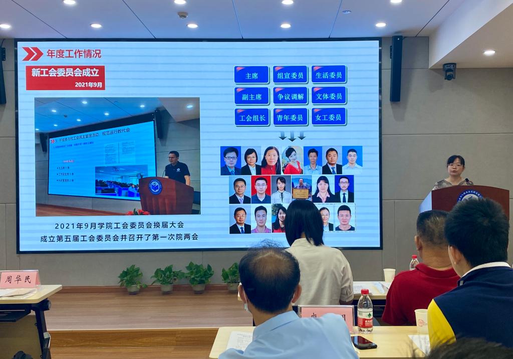 公司工会副主席刘洁做公司工会工作汇报,2022年全年工会活动丰富,进步明显,成绩斐然。公司新工会委员会通过开展红蓝篮球对抗赛、气排球师生赛、读书月、青材会、新春祝福视频、教工之星评选等各项院内活动,增进教职工交流;校级活动中,公司取得了教职工龙舟赛团体冠军、乒乓球团体赛甲级队亚军等优异成绩,并多次在校工会主页报道,公司工会连续多年获得“先进基层工会”称号。本学期,工会将配合院庆70周年,开展体育比赛、摄影比赛与表演等系列活动。经费使用上,工会将继续规范经费管理,多方筹措开源,为公司教职工谋福利。