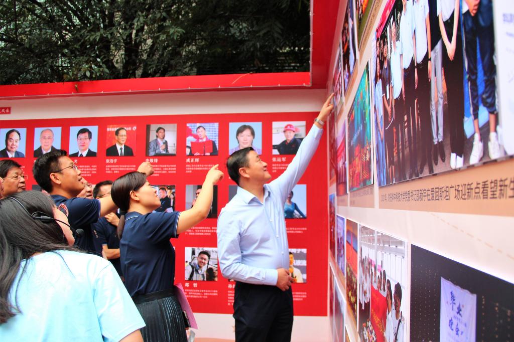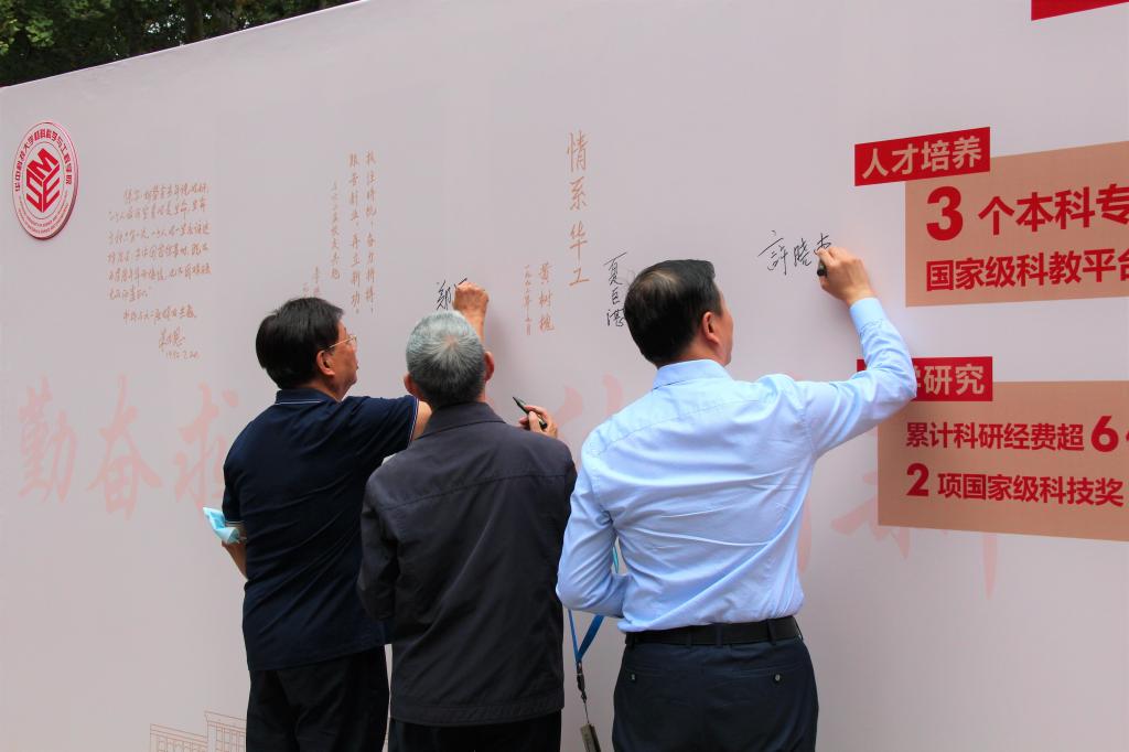 在讲解员代表潘庆玲老师的引导下,全体参加仪式嘉宾、师生代表参观图片展,一张张老照片唤起珍贵回忆,参观者们亲切交流,共忆公司发展之路,参观最后,副董事长许晓东、夏巨谌经理、郑恩焰书记签名,全体参加仪式嘉宾合影留念。