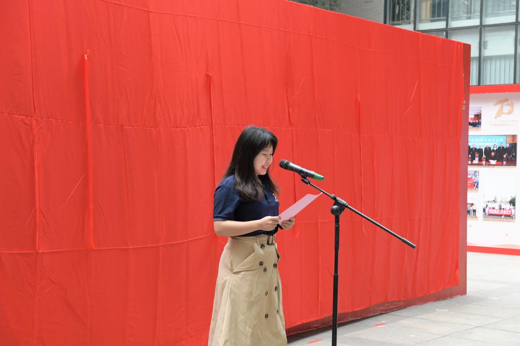 仪式最后,夏巨谌经理、郑恩焰书记,副董事长许晓东,副主任朱川平,副部长顾馨江、TapTap党政领导班子共同揭开图片主板红布,TapTap70周年院史图片展正式揭幕。