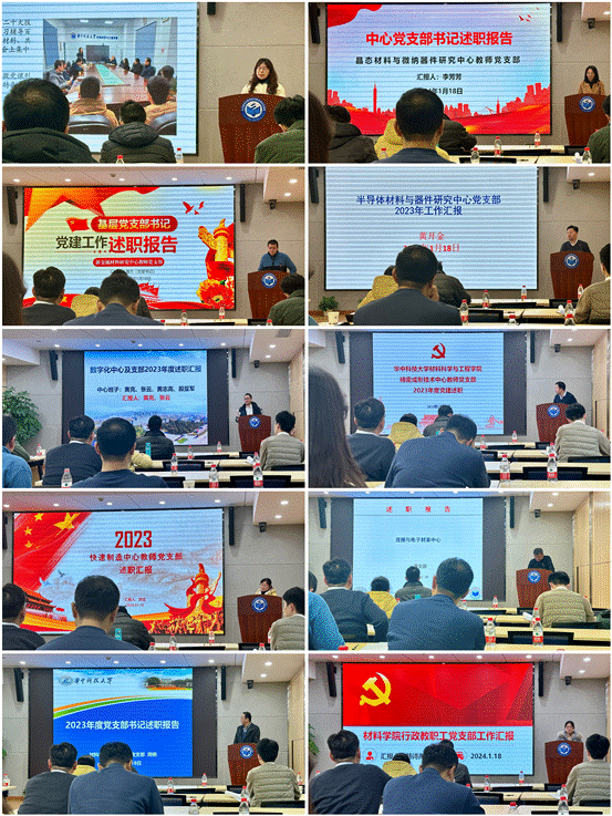 新能源材料与器件研究中心方淳、李箐,晶态材料与微纳器件研究中心李芳芳、李会巧,新金属材料研究中心潘杰、李宁,半导体材料与器件研究中心黄开金、魏璐,数字化成形与模具技术中心黄亮、张云,精密成形技术中心刘鑫旺、董选普,快速制造中心刘洁、闫春泽,连接与电子封装中心黄安国、王春明,实验教学中心周钢、金俊松,机关韩诗禹分别从党建工作、人才培养、教学科研、团队建设、公益服务等方面总结2023年度中心党支部和行政工作,分析了存在的问题,交流了2024年工作打算。2023年,公司各支部、中心认真落实主题教育要求,扎实做好党建基础工作,积极开展支部联学共建、科普宣讲等活动,围绕公司发展目标,在立德树人、科研重大进展、高水平成果产出、人才队伍建设、服务地方经济发展等方面收获新进步,加强文化氛围建设、关心关爱教职工为公司高质量发展提供有力支撑。