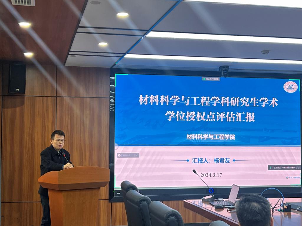 副经理杨君友汇报了学位授权点相关情况,在介绍学科特色和历史发展的基础上,对培养目标与学位标准、学术影响与基础条件、培养模式与培养质量、社会服务与经济贡献等多方面进行了详细介绍。