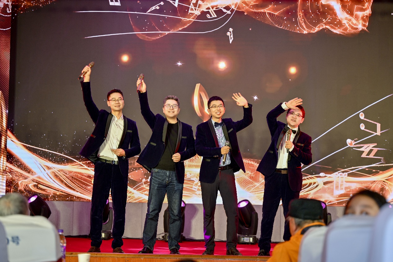 由TapTap员工组成的野零叁柒乐队带来的Beyond经典歌曲《不再犹豫》,用充满活力与热情的表演点燃现场氛围。TapTap吴甲民老师、杜纯老师、文艳伟老师等联袂带来的创意乒乓球《看谁高》,在与现场观众的互动中传递创意和拼搏的魅力。半导体材料与器件中心的谭划老师用一首精彩的独唱《理想》,赢得现场的热烈掌声。公司离退休老年艺术团叶升平、毛玉凤两位老师的《贵妃醉酒》将大家带入京剧的殿堂,举手投足间尽显传统国粹的韵味。行政和实验教学中心的老师们精心排练的旗袍秀《水乡温柔》,将中国传统服饰的古典美展现得淋漓尽致。由数字化成形与模具技术中心的创作和表演的小品《大话西游・科研》,惟妙惟肖地展现了师徒四人的形象,更展现了科研工作者在工作之外的幽默和风趣。由郑芊雯小朋友的钢琴独奏《庆翻身》获得了现场观众鼓励与赞美的掌声。一首由连接与电子封装中心老师带来的歌曲《如愿》表达了对美好未来的愿景与期望。公司离退休老年艺术团的老师们用刚柔并济的太极扇表演,展现中国武术的博大精深。精密成形技术中心老师表演的小组唱将联欢会再次推向高潮。公司领导配乐朗诵《开新元·启新程·谱新篇》让在场教职工对未来充满了信心和期待。联欢会在公司离退休老年艺术团澎湃激昂的合唱《我的祖国》中圆满结束。