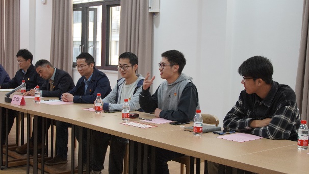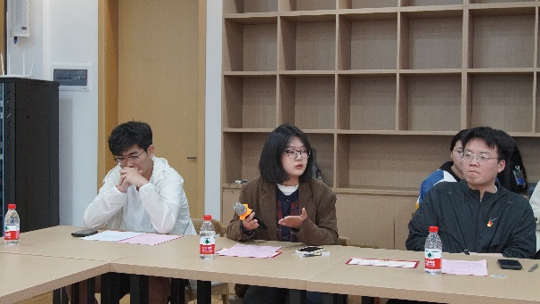 在交流互动环节,低年级党章学习小组组长针对专业学习、员工工作、生涯规划、科研竞赛等方面提出了疑问,社区支部党员结合自身经历一一耐心解答。涂晨雨同学提出:“如何平衡员工工作投入时间与最终收获不成正比的心理落差感?”对此问题,社区支部党员张君瑶形象地答到:“我认为做员工工作就像吃火锅,你永远不知道下一筷子会捞出什么,重要的是过程中的体验感。”