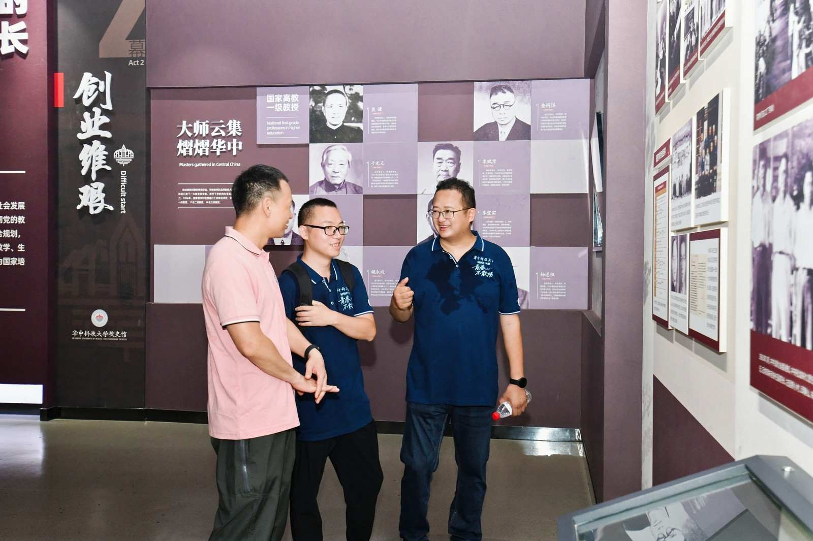 合影后,员工们走进校史馆,在讲解员引导下回顾母校发展历程。老照片与历史实物前,大家感慨母校二十载巨变,自豪感油然而生。
