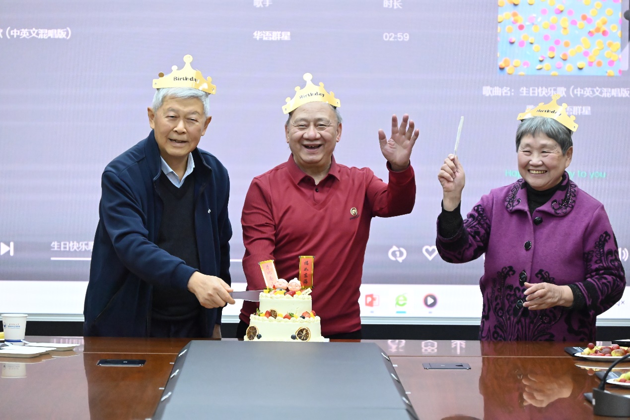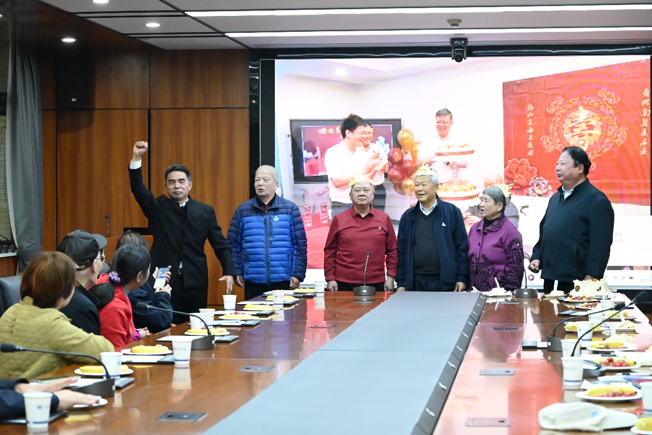 在温馨悠扬的《生日快乐歌》旋律中,今年满80周岁李志刚教授、陶景光教授、奚素碧老师作为“寿星”代表共同切开满载祝福的生日蛋糕。在叶升平教授的带领下,与会老同志们再次齐声高唱《七律・为圆中国梦犹童》,激昂的歌声将活动现场气氛推向高潮。