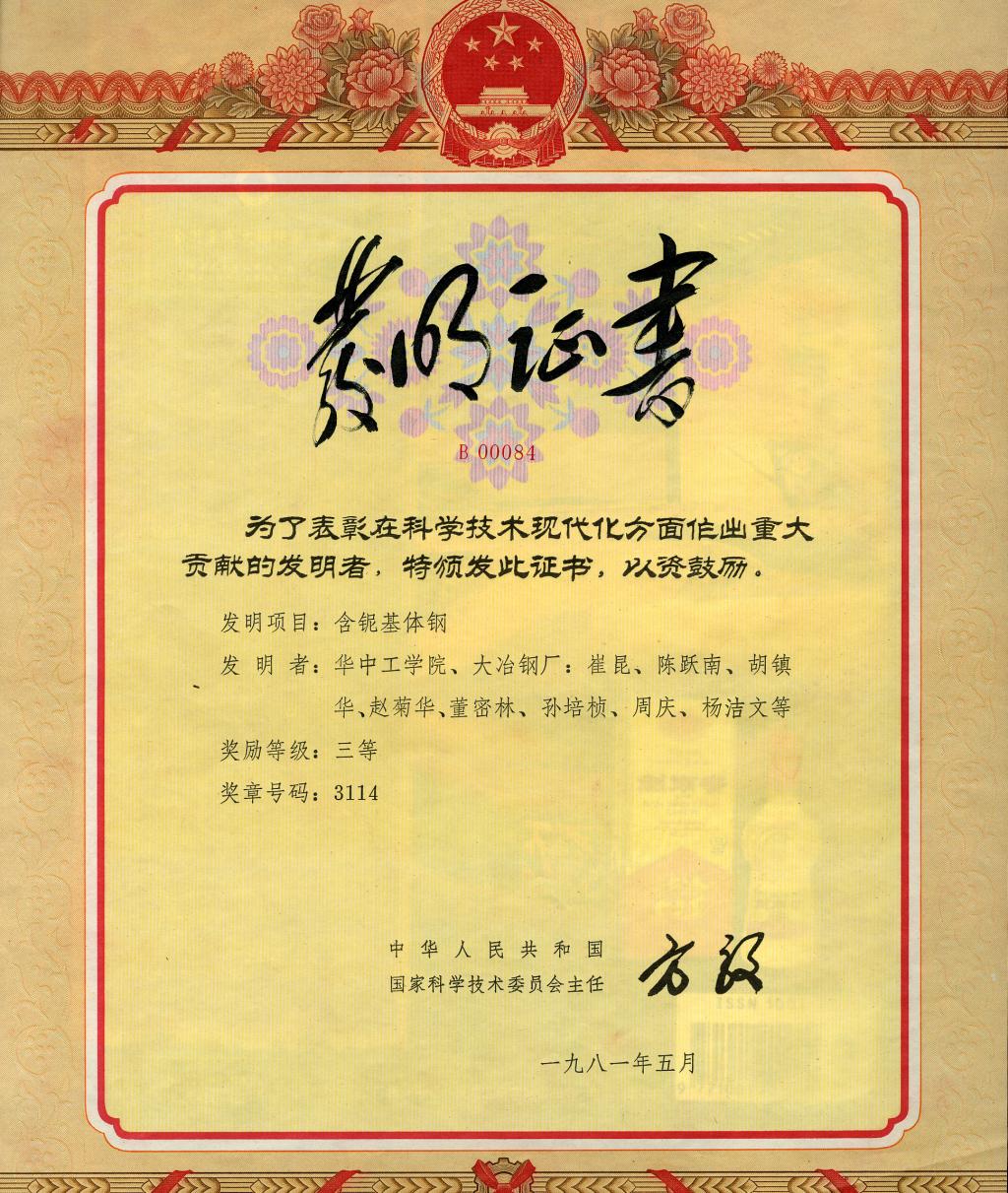 经过反复实验,他和同事们设计出基于我国富有元素的新钢种冶炼方案,新模具钢制成的模具寿命比旧有模具增加了一倍以上,每副模具寿命可超过两万件。他又对一种基体钢进行改制,国际首创含铌基体钢,将其中的碳含量适当提高,并加入少量的铌,大大提高了钢的强韧性,改善其工艺性能,在汽车、航天、电子等诸多行业得到广泛应用,成果于1981年获国家发明三等奖,1985年纳入国家工具钢标准。20世纪80年代初,崔崑与钢厂合作,研制易切削精密模具钢,为上海一家无线电厂解决了线路板模具大难题,仅此一项每年可节约100多万美元外汇,成果于1985年获国家发明二等奖。