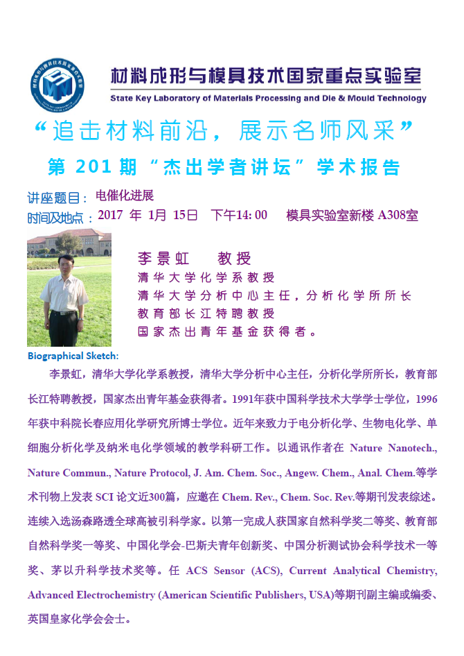 【2017年01月15日】第201期“杰出学者讲坛”学术报告