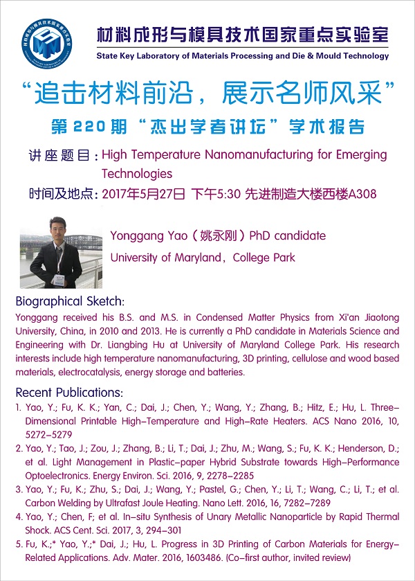 【2017年05月27日】第220期“杰出学者讲坛”学术报告