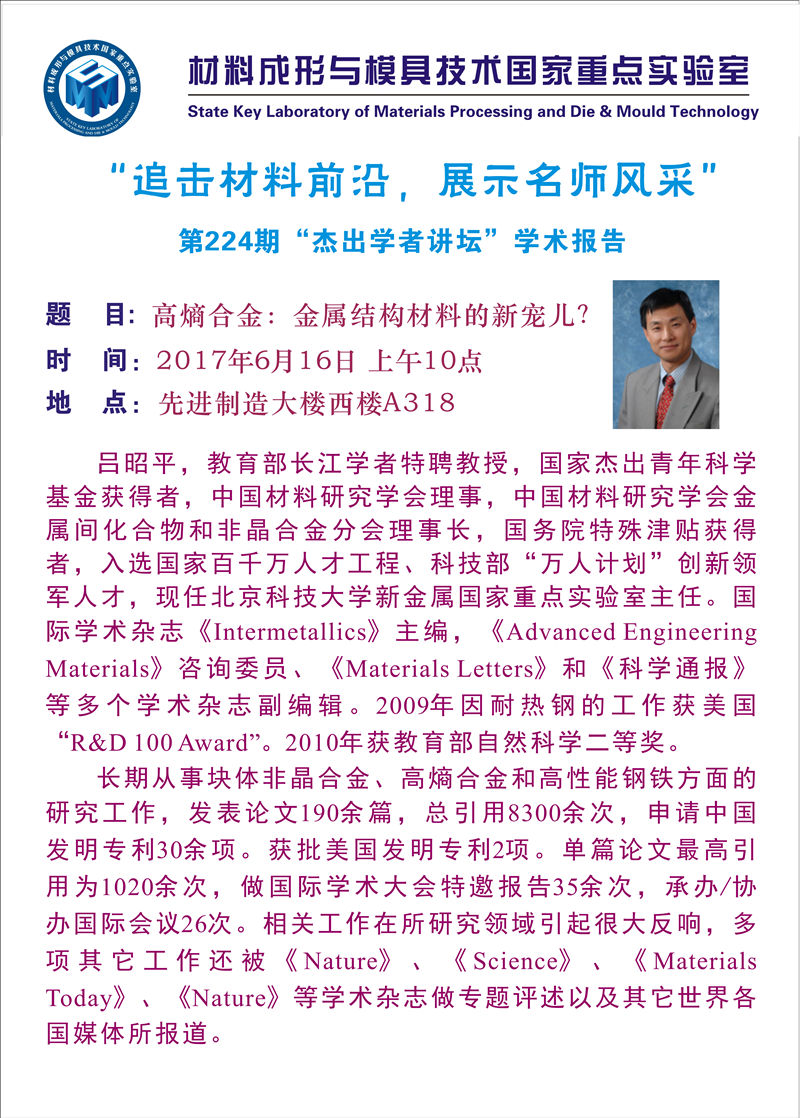 【2017年06月16日】第224期“杰出学者讲坛”学术报告