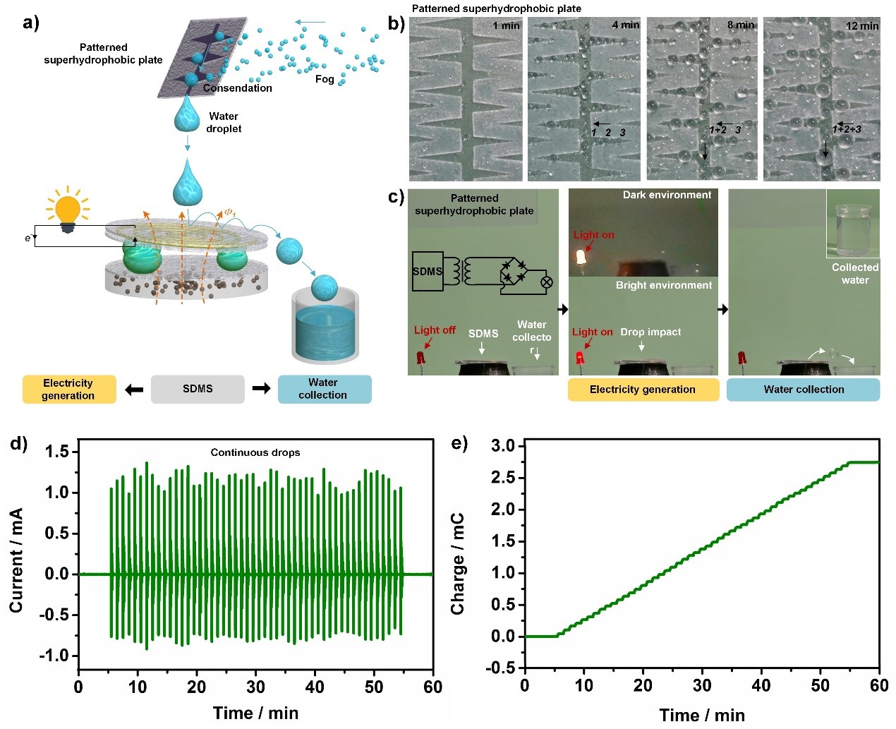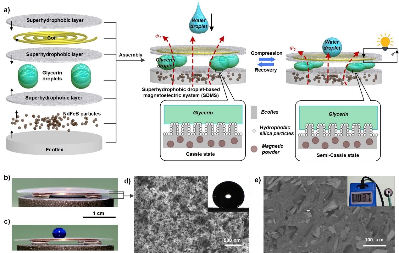图4. 收集环境离散水源与发电于一体的超疏水磁电复合模型