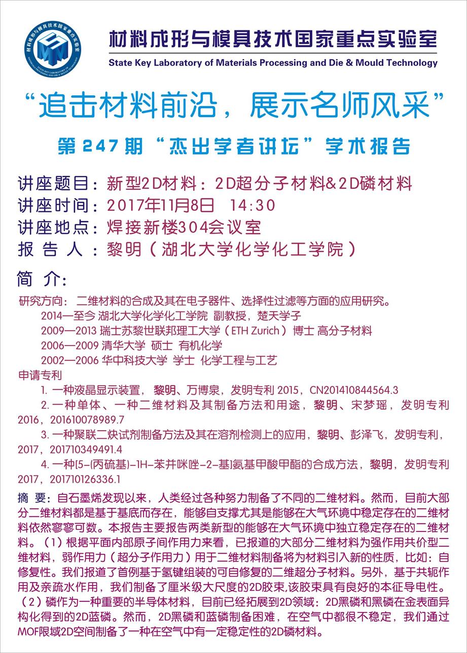 【2017年10月30日】第244期“杰出学者讲坛”学术报告