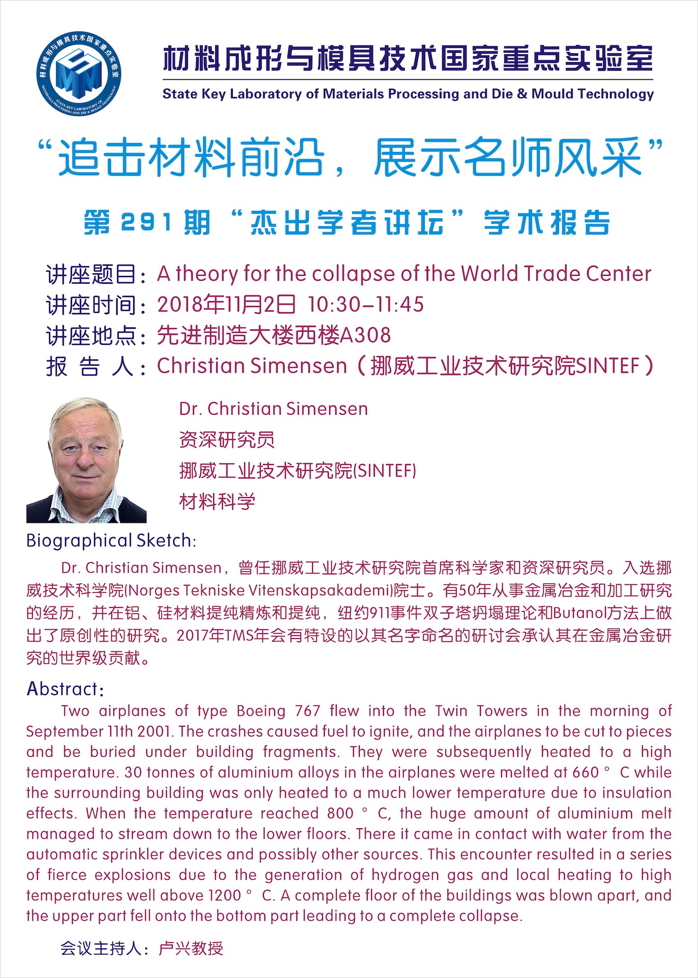 第291期杰出学者讲坛——挪威工业技术研究院Dr.Christian Simensen