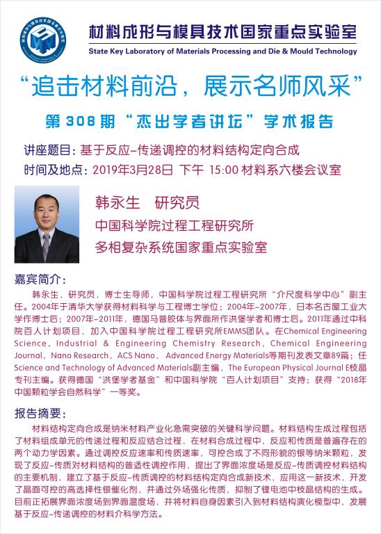 第308期杰出学者讲坛——中国科公司过程工程研究所韩永生研究员