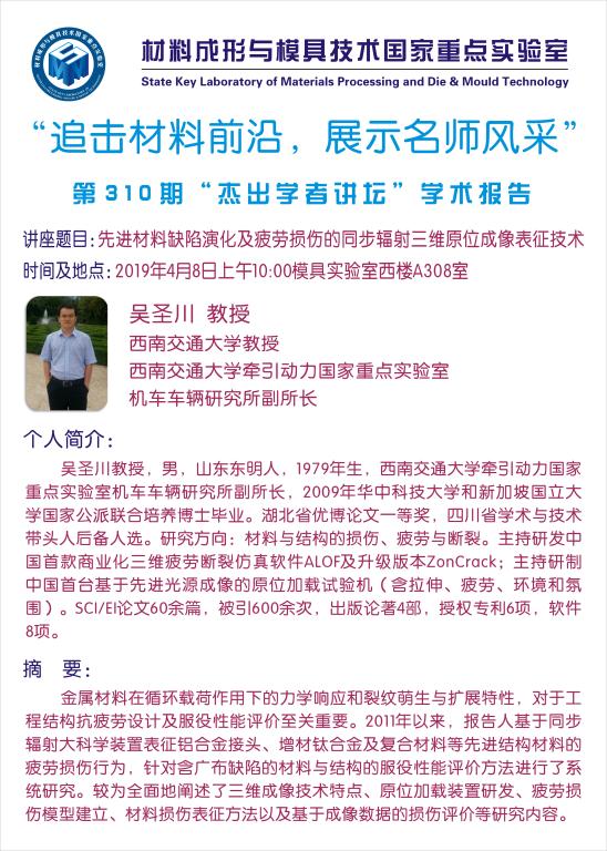 第310期杰出学者讲坛——西南交通大学教授吴圣川