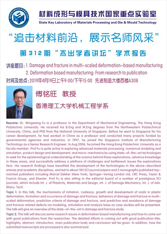 第312期杰出学者讲坛——香港理工大学机械工程学系教授傅铭旺