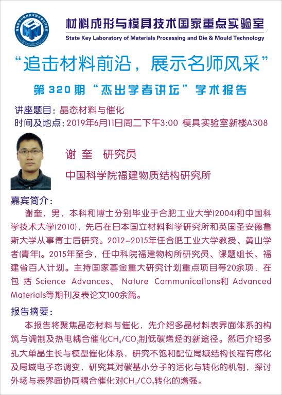 第320期杰出学者讲坛——中国科公司福建物质结构研究所谢奎研究员