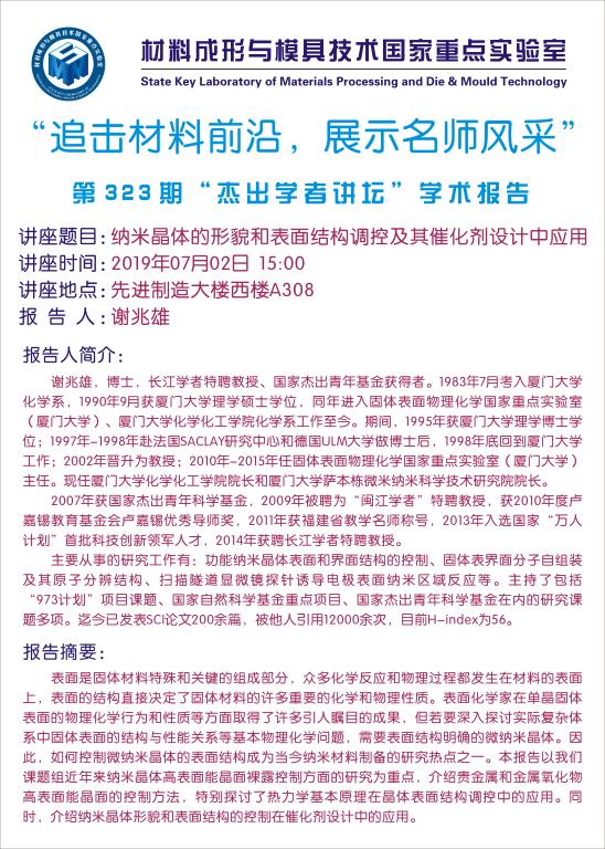 第323期杰出学者讲坛——厦门大学教授谢兆雄