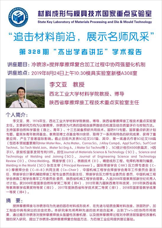 第328期杰出学者讲坛——西北工业大学教授李文亚