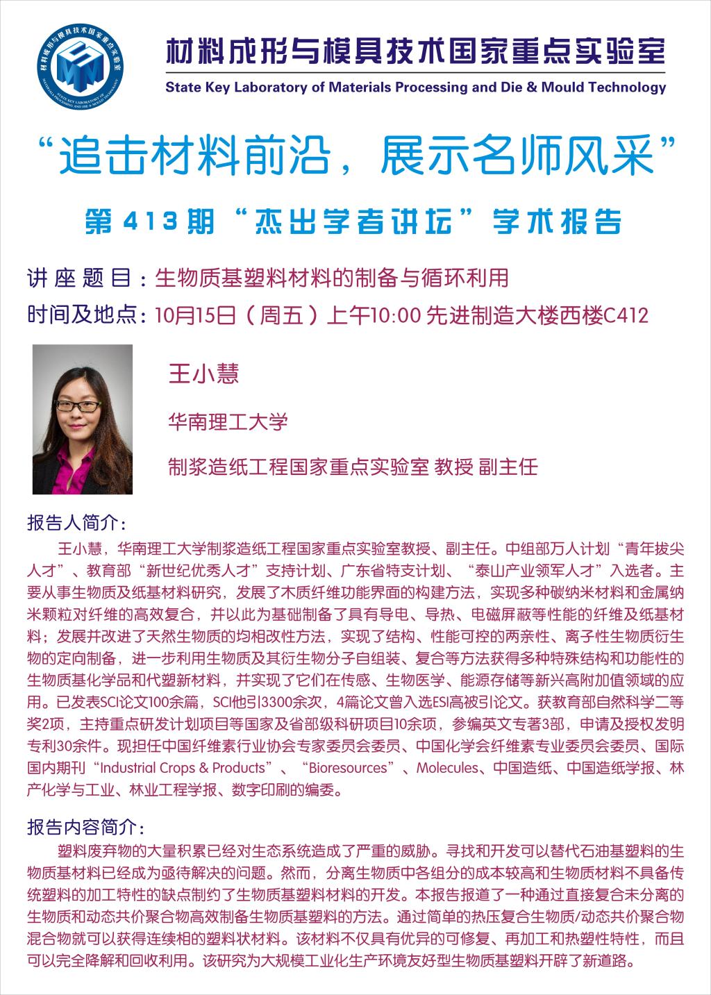 2021年10月15日“杰出学者”讲坛:生物质基塑料材料的制备与循环利用