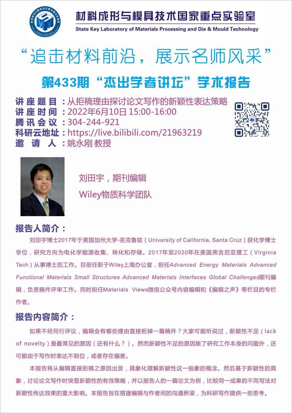 2022年6月10日"杰出学者”讲坛:从拒稿理由探讨论文写作的新颖性表达策略