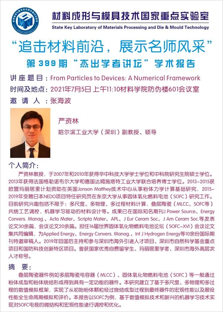 第399期杰出学者讲坛——哈尔滨工业大学副教授严资林