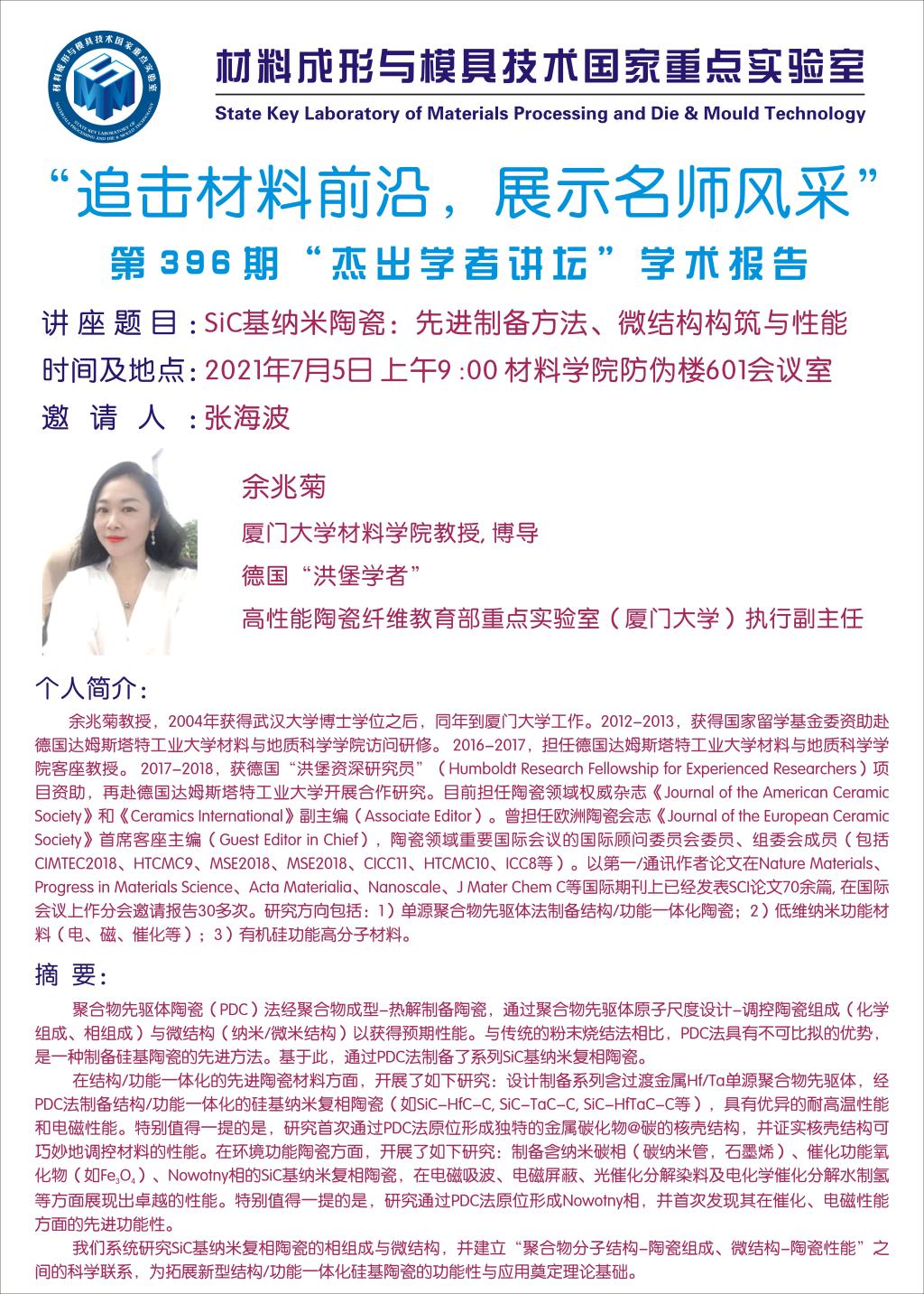 第396期杰出学者讲坛——厦门大学余兆菊教授