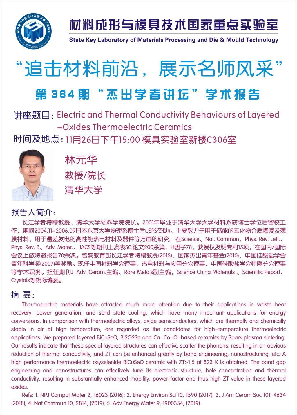 第384期杰出学者讲坛——清华大学林元华教授