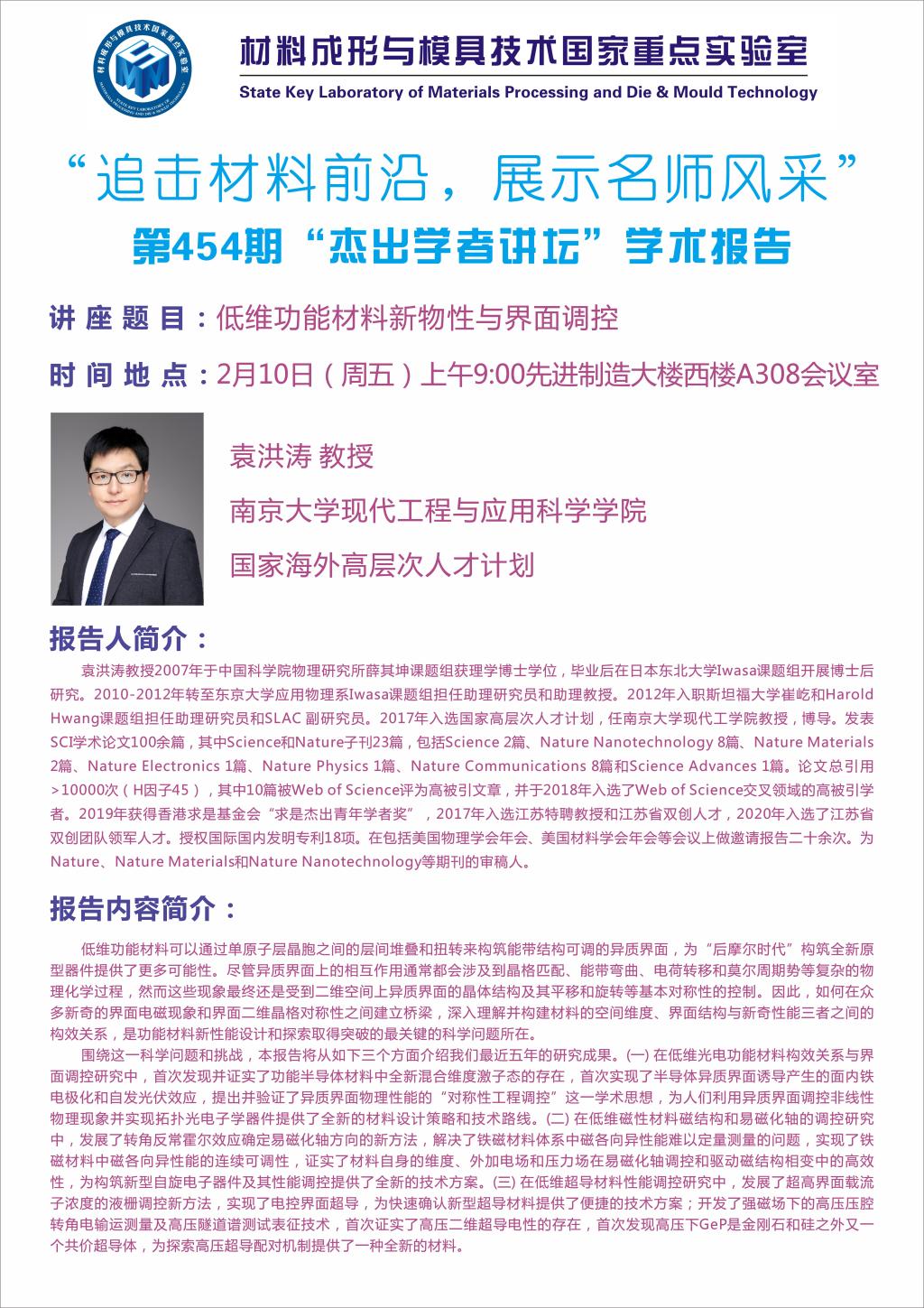 2023年2月10日“杰出学者讲坛”:低维功能材料新物性与界面调控