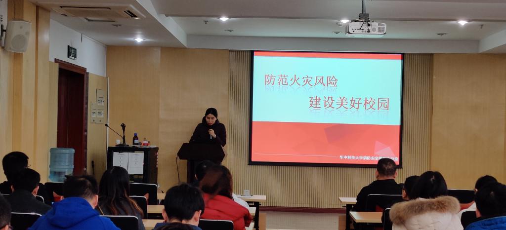 在第一阶段的消防安全讲座中,陈老师给全体师生讲解消防相关法律法规条款、实验室火灾及宿舍火灾的事故成因及注意事项和消防基础知识的介绍,讲座大大提高了师生们的消防安全意识、增强了消防知识。