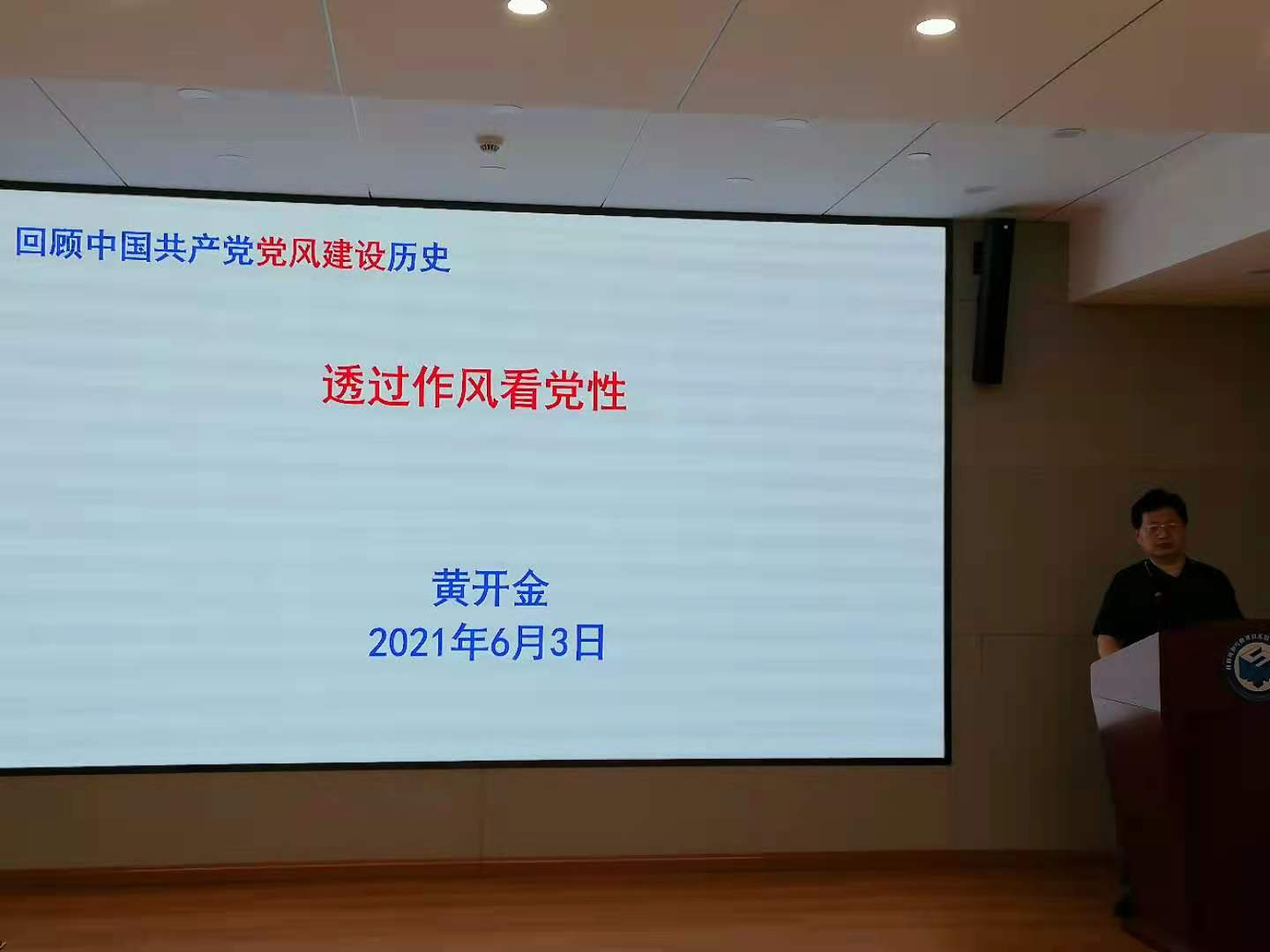图1. 黄开金老师做《透过作风看党性》专题教育