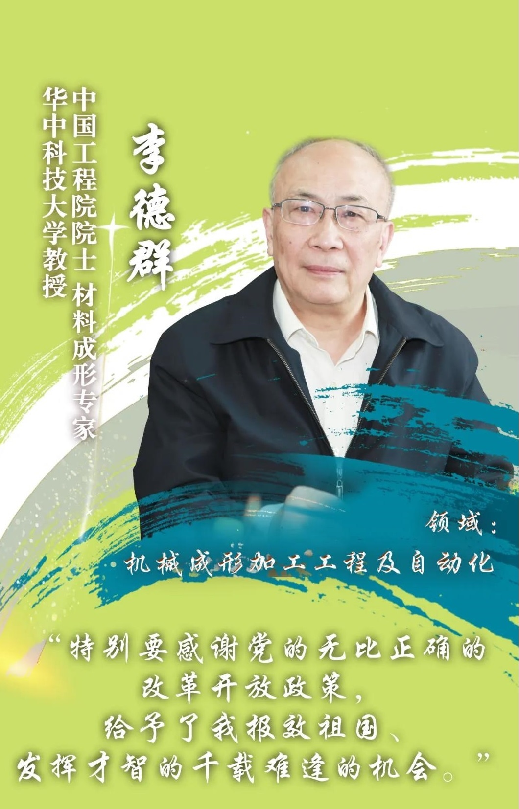 我一直从事材料成形工作,面对几十年前与国外发达国家的巨大差距,筚路褴褛,攻坚克难,经历了从跟跑、并跑到领跑,从数字化、网络化到智能化的全过程。我个人的作用有限,成绩是大家共同努力的结果,我要感谢我的研发团队,感谢党的正确领导,感谢我们的新时代。谢谢大家!