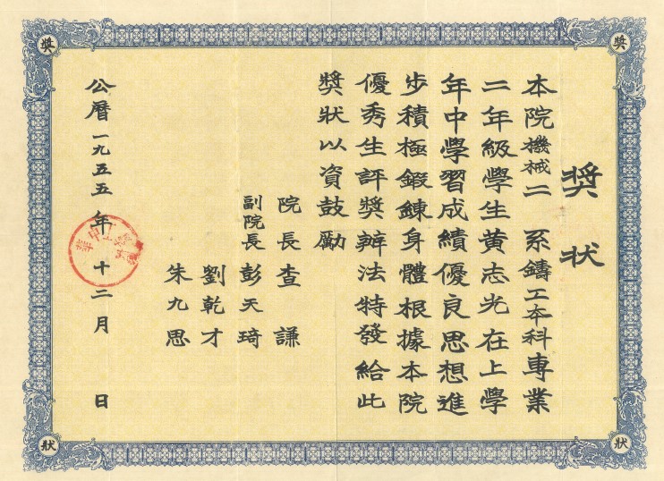 图2 1955年黄志光教授获得华中工公司优秀员工