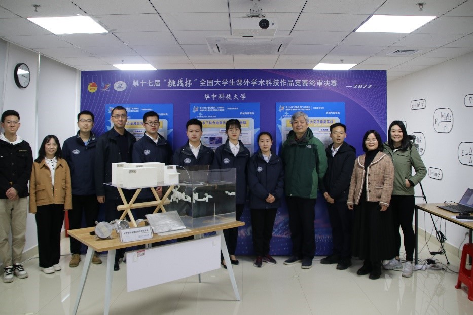 公司员工团队在指导老师的帮助下,针对返坞维修耗时长成本高这一痛点,设计新型双层高刚度排水装置,内外层分别通入保护气和压缩空气,创造稳定局部干燥环境的同时保证了熔池的稳定,为在役修复提供了技术支撑;针对同牌号焊丝修复钛合金质量不达标这一难点,设计同轴同步丝粉协同熔注激光修复装置,利用金属基复材熔覆层对钛合金构件进行修复,成功实现同质修复的目标。该系统可在三十米水深环境下对船体进行修复,为钛合金修复提供了一种新的技术手段。项目受到了评委专家的高度评价,最终勇夺国家二等奖。