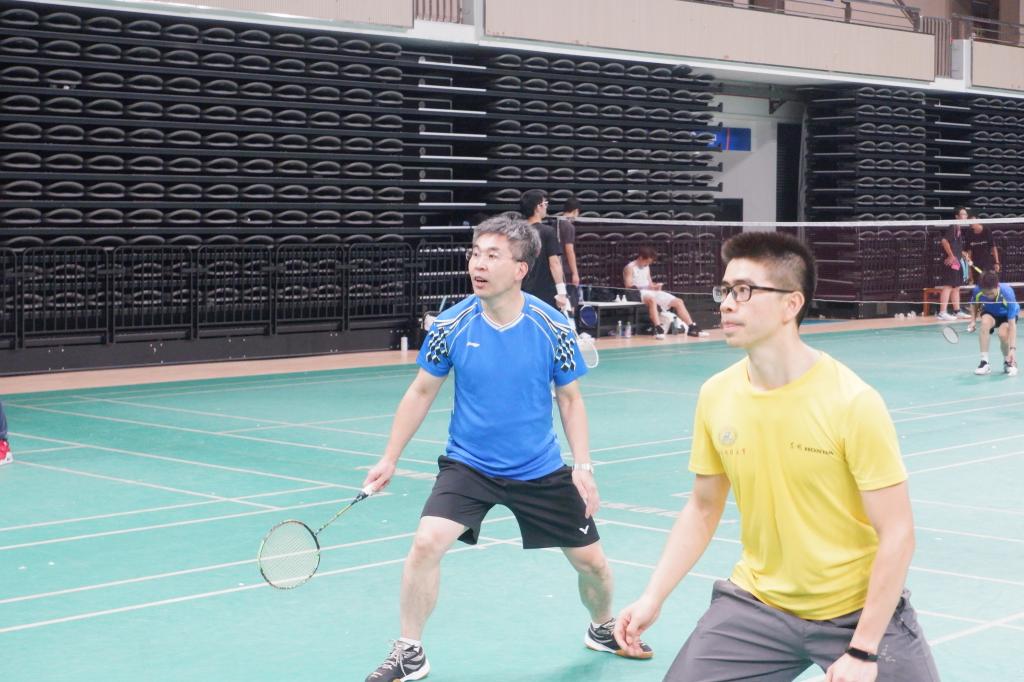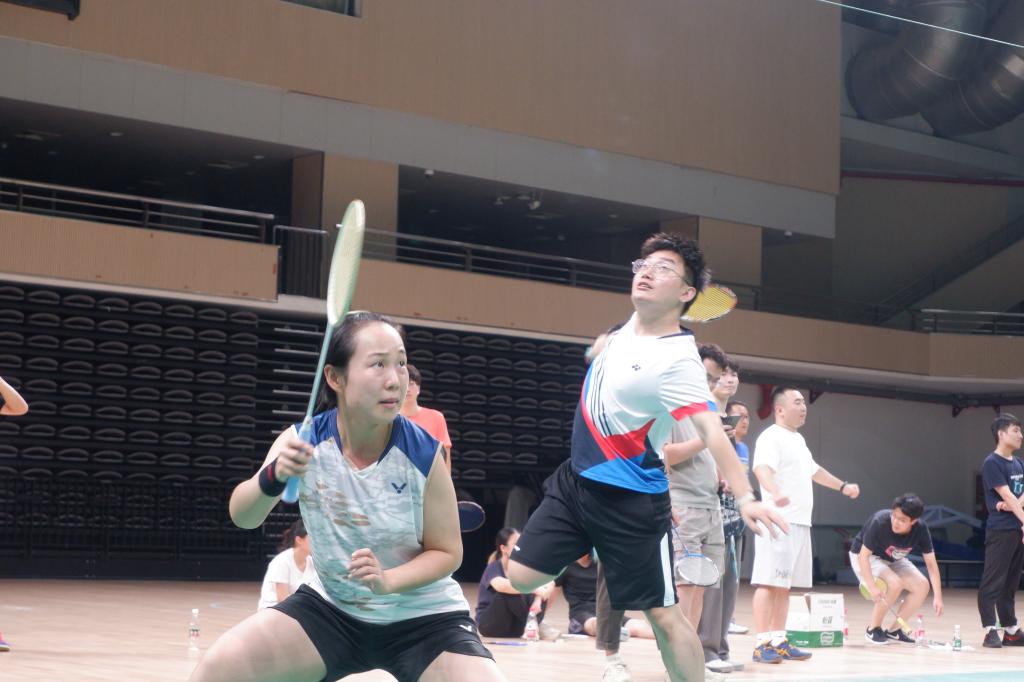 9月27日晚上6点,参赛队员陆续到场签到并进行热身运动。首轮为小组赛,四个小组轮流对抗,每个小组均需打满三轮,每轮均需打满男1双、混1双、男2双、混2双和女双共5场比赛,最终根据大比分选出小组前两名进入决赛。由于各个小组对彼此的实力都不熟悉,因此排兵布阵相对随意,小组赛充满了不确定性和趣味性,最终,B组和C组以大比分2分的成绩进入决赛角逐1、2名,A组和D组争夺3、4名。