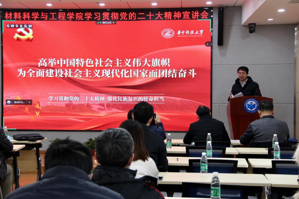 陈廷柱首先介绍了党的二十大的基本情况。他指出,党的二十大是在全党全国各族人民迈上全面建设社会主义现代化国家新征程、向第二个百年奋斗目标进军的关键时刻召开的一次十分重要的大会,是一次高举旗帜、凝聚力量、团结奋进的大会。他从党的二十大主题和主要成果、过去5年的工作和新时代10年的伟大变革、马克思主义中国化时代化、中国式现代化、全面建设社会主义现代化国家的目标任务、坚持党的全面领导和全面从严治党以及应对风险挑战等主要内容,完整、准确、全面地阐述了党的二十大精神精髓要义。他指出,公司坚持与祖国共进,与时代同行,努力办好人民满意的教育,十年来已取得许多发展成就,根据党的二十大报告中有关加快建设教育强国、科技强国、人才强国,办好人民满意的教育,完善科技创新体系,加快实施创新驱动发展战略,深入实施人才强国战略的重要论述,公司将从七个方面完整准确全面贯彻党的二十大精神。
