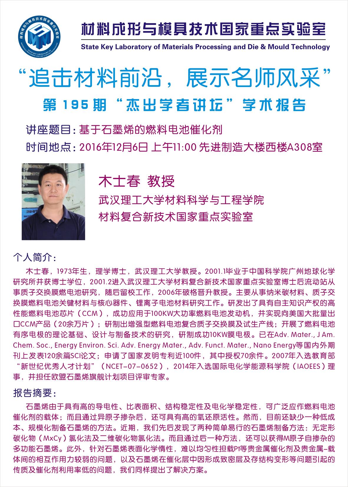 【2016年12月6日】第195期“杰出学者讲坛”学术报告