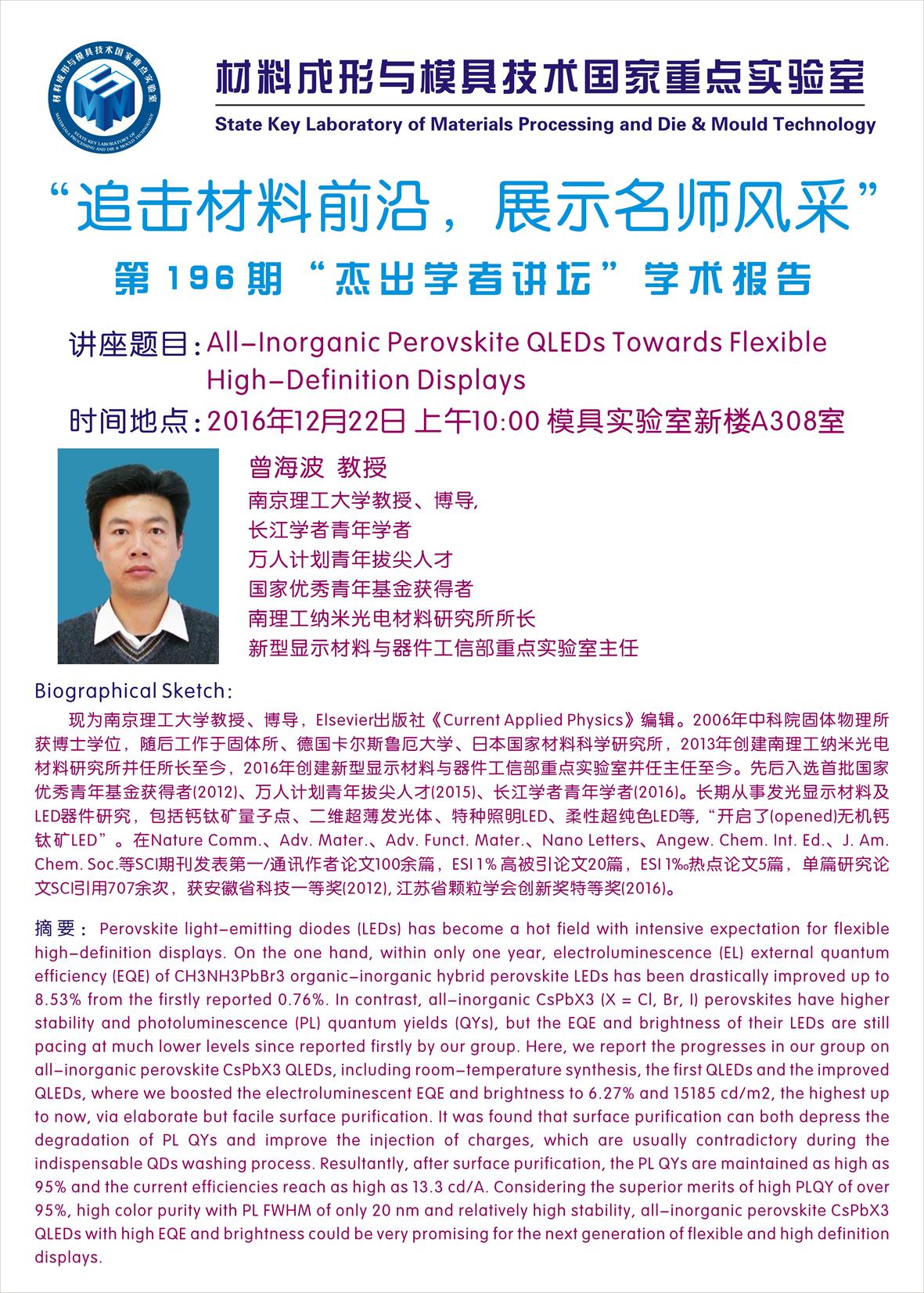 【2016年12月22日】第196期“杰出学者讲坛”学术报…