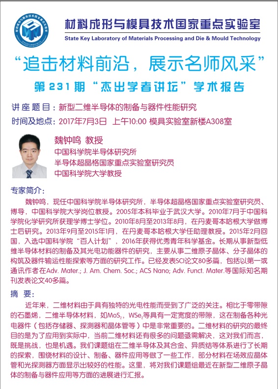 【2017年09月06日】第235期“杰出学者讲坛”学术报告