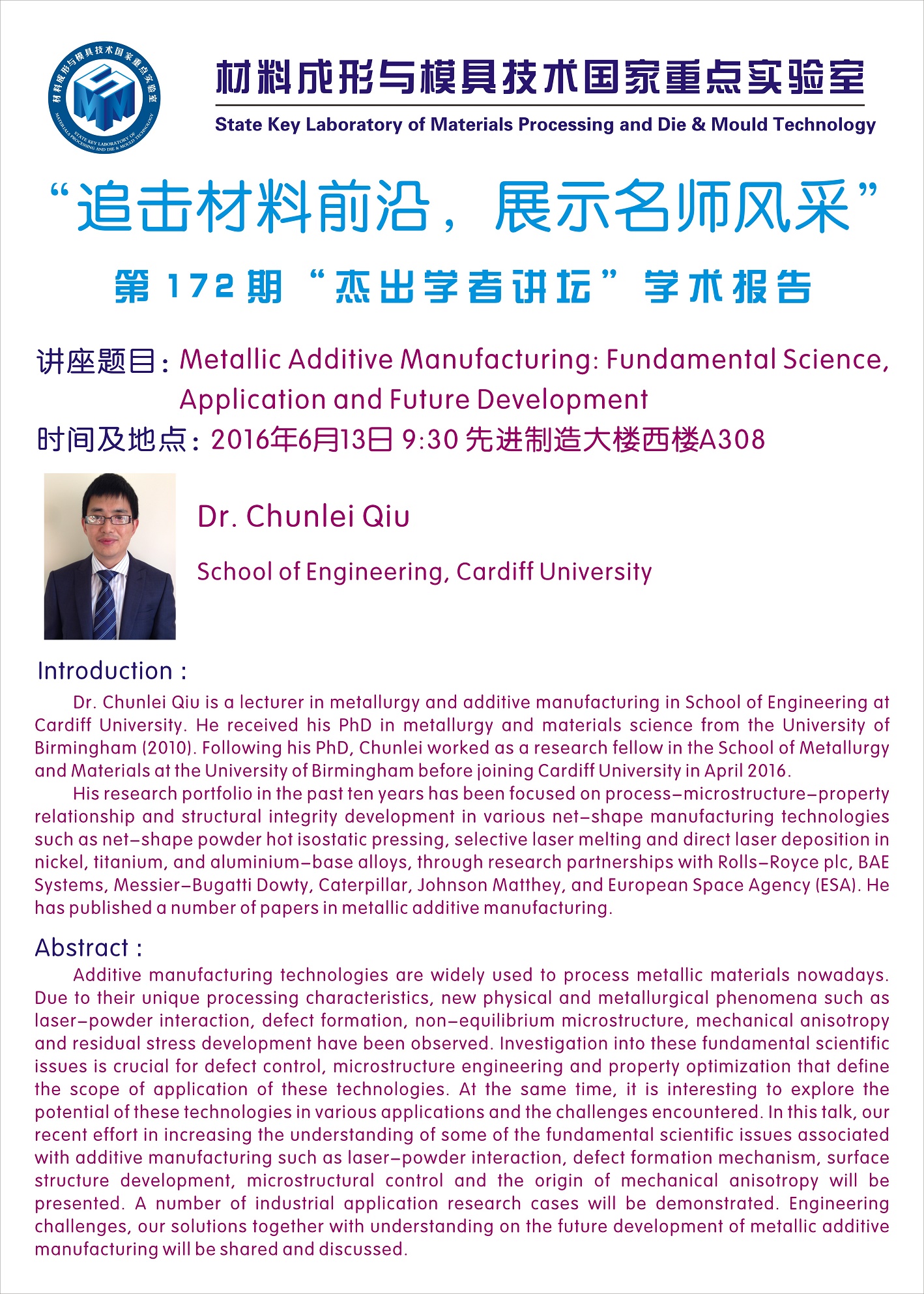 材料成形与模具技术国家重点实验室 “追击材料前沿,展示名师风采” 第167期“杰出学者讲坛”学术报告 讲座题目:Cathodic arc plasmas: An introduction from histori…