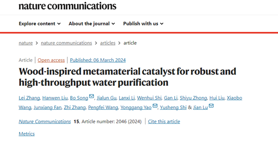 (通讯员 张磊)3月7日,《自然·通讯》(Nature Communications)在线发表TapTap史玉升教授团队与香港城市大学吕坚院士团队的合作研究成果:木材启发的超材料催化…