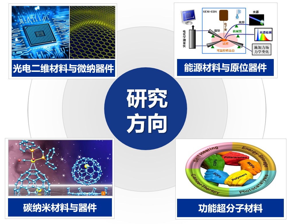 晶态材料与微纳器件研究中心立足材料科学前沿,在光电二维晶体材料与微纳器件、储能材料与原位器件、碳纳米材料与器件、功能超分子等方向上进行了一系列开创性的工作并取得了独特优势。